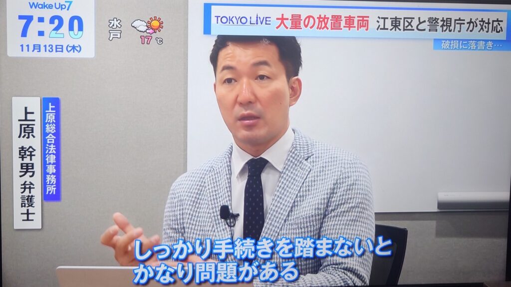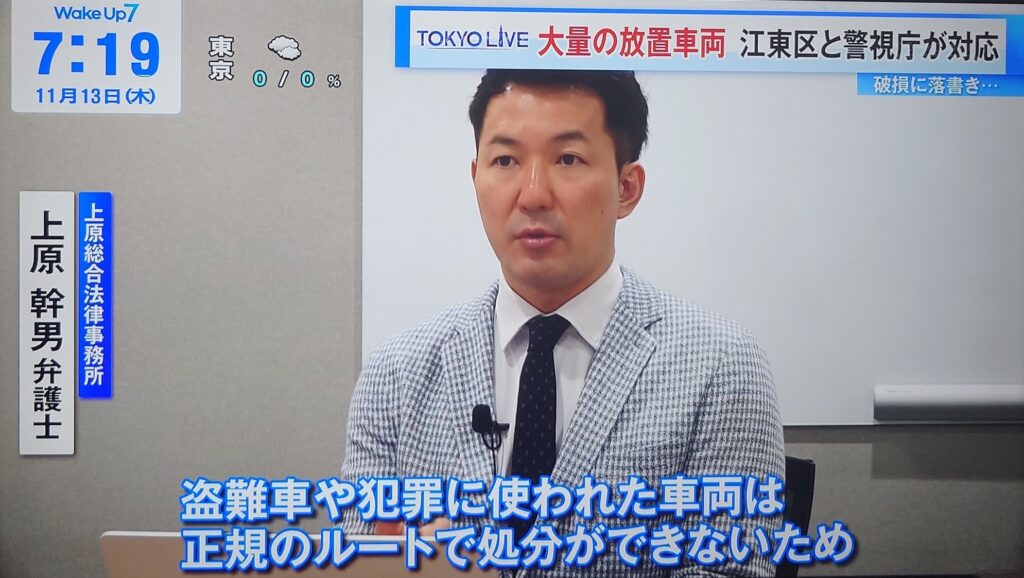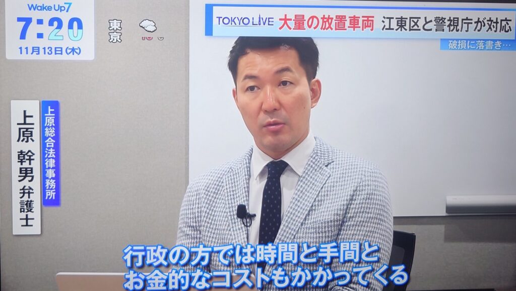 2025年11月13日(木)代表弁護士 上原幹男がTOKYO MXの「Wake Up7」に出演