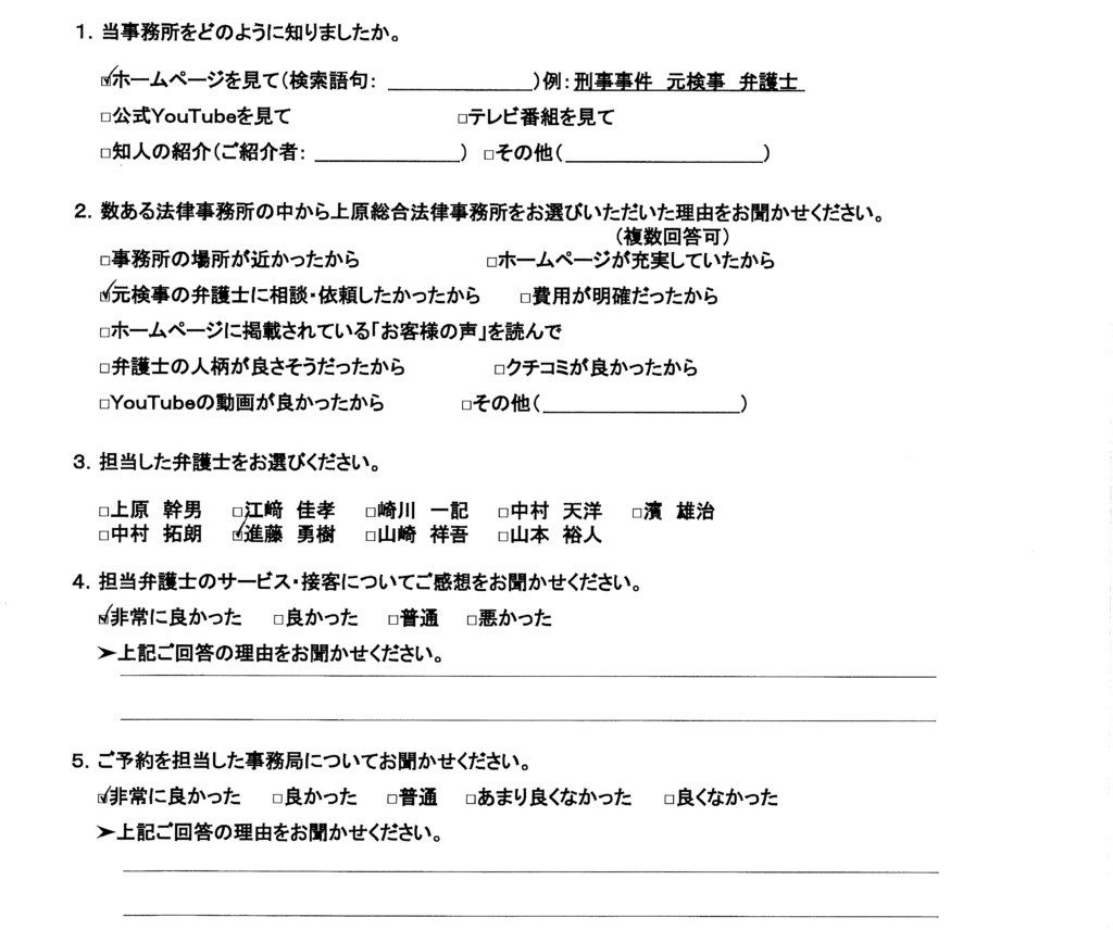 担当した弁護士のサービス・接客についてのご感想をお聞かせください。