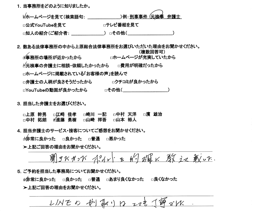 担当した弁護士のサービス・接客についてのご感想をお聞かせください。