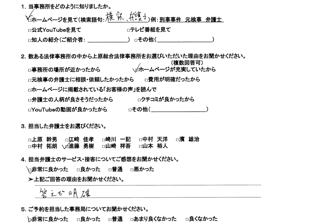 担当した弁護士のサービス・接客についてのご感想をお聞かせください。
